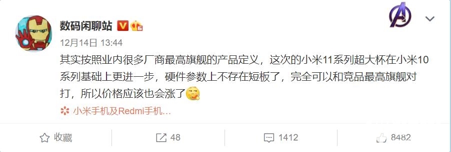 根据博主@数码闲聊站爆料,即将发布的小米11系列超大杯会在小米11系列的基础上更进一步,硬件参数不存在短板,所以价格应该会涨。