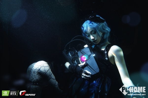 该卡在外形设计方面汲取了海洋漩涡的灵感,正面壳体分为四个区域,并装饰以纹理质感、凹凸阴影,而视觉中心点是一个特别设计的RGB灯效“海洋之眼”蓝洞,背后则是特别的独立水泵,不但更有视觉冲击力,也便于后期更换水泵的同时保留RGB灯效。