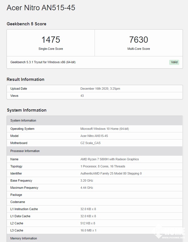 目前宏碁新款Nitro游戏本电脑跑分现已出现在Geekbench 5跑分网站上,据信息显示,单核性能明显提升。