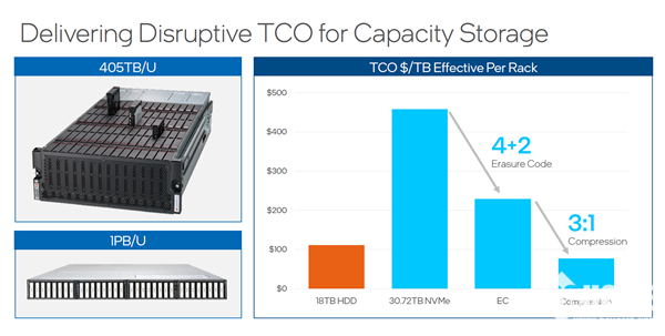 利用该SSD,数据中心厂商可以在1U服务器内实现405TB(U.2)或者1PB(E1.L)的总存储容量,从而大大降低TCO成本。