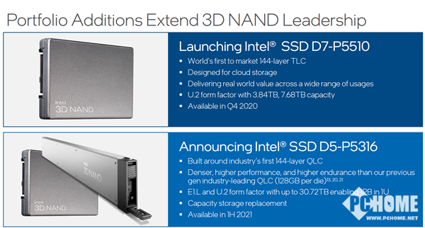 Intel SSD D7-P5510将在本季度出货,SSD D5-P5316明年上半年出货,价格均未公开。