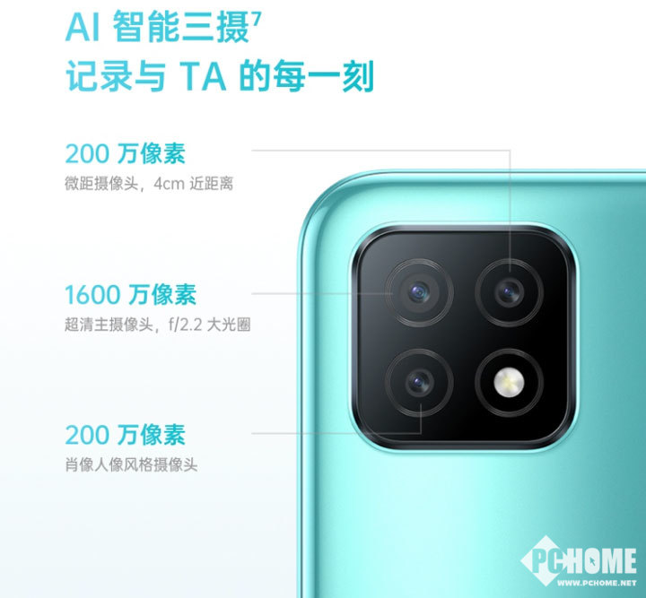机身背面为后置1600万智能AI三摄,前置则为800万像素美颜镜头,不仅支持前置单摄暗光美颜自拍,还可利用后置主摄与超分辨率算法解锁一亿像素惊艳画质。
