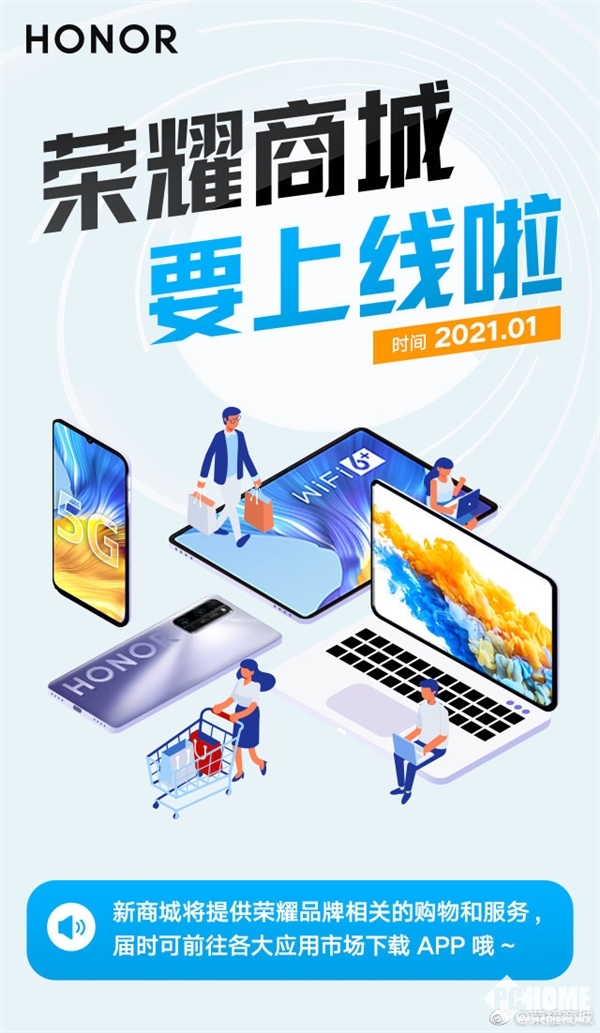 在和华为分开后,荣耀的组织架构进行了调整。现在@荣耀商城官博宣布,荣耀商城将于2021年1月正式上线。