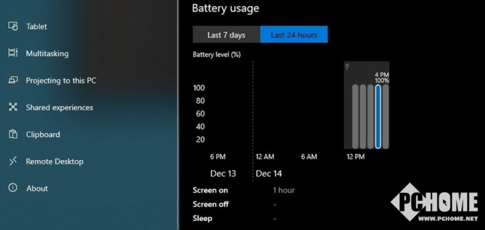 在最新发布的Build 21277 预览版更新中,新的电池使用监控器已经上线了,像很多手机一样,它会告诉你笔记本电脑或者平板电脑在过去 24 小时/7天内的电池使用情况。