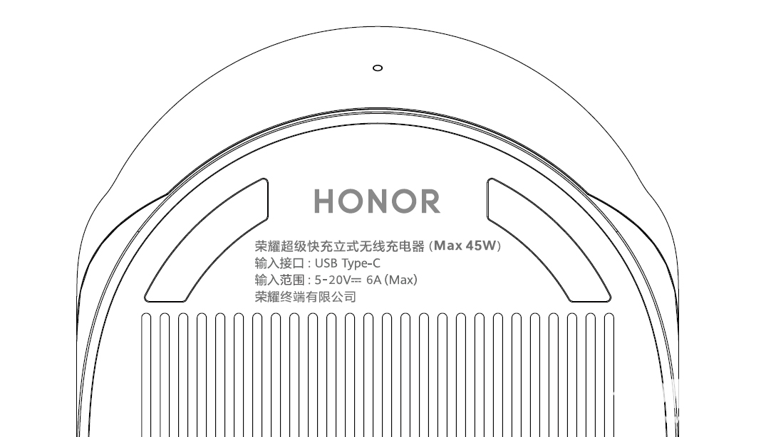 今日,一张荣耀超级快充立式无线充电器的设计图首次曝光。图中显示,该充电器无线充电功率最高为45W。这也从侧面证实,荣耀V40除了支持66W有线快充外,还将支持45W无线快充。