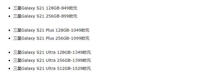 Galaxy S21 Plus起售价1049欧元(约合人民币8400元);