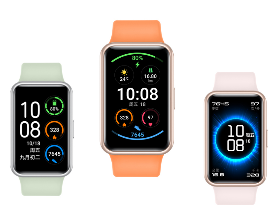 华为Watch Fit智能手表配置1.64英寸全彩大屏,搭配窄边框设计,可以带来更加高清的视觉体验。其采用2.5D曲面研磨镜片,更加有质感。在配色方面,这款手表拥有清新薄荷绿、优雅樱语粉、热情蜜瓜橙、神秘曜石黑等等配色。此外,这款手表的重量仅有34g,在佩戴的时候更加轻盈舒适。在表盘方面,这款手表可以挑选300余款丰富的表盘,用户也可以将喜欢的照片收进表盘。