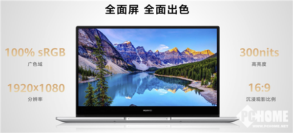 这次的MateBook D14/D15 2021版在原来的基础上升级,首先是屏幕升级到了100% sRGB色域,依然是1920x1080分辨率,亮度柯达300尼特。
