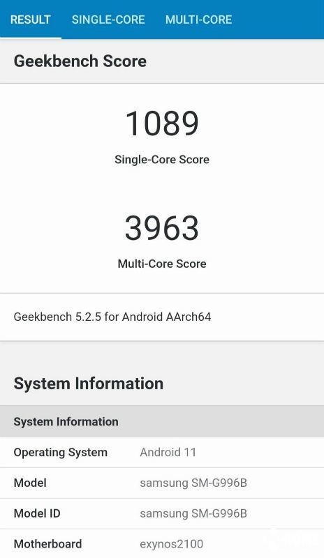 三星Exynos 2100处理器最新的Geekbench 5跑分显示,其单核测试成绩为1108分,多核成绩则达到了3963分。