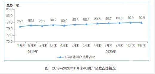 据工信部最新消息,在今年的11月末,三家基础电信企业的移动电话用户总数达16亿户,其中4G用户在移动电话用户总数中占比为80.9%,占比与10月末持平。
