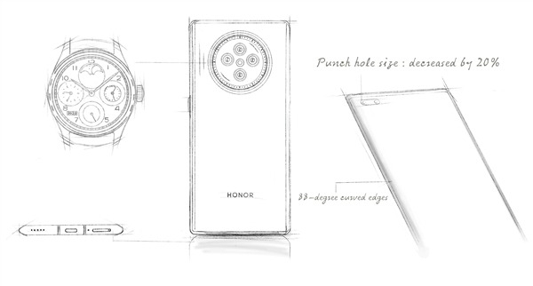 值得注意的是,此次曝光的渲染图也显示荣耀V40的侧面边框非常窄,应该不足以配备实体的电源、音量等按键,结合之前曝光的设计图来看,荣耀V40将会采用电源键+虚拟音量按键的设计。
