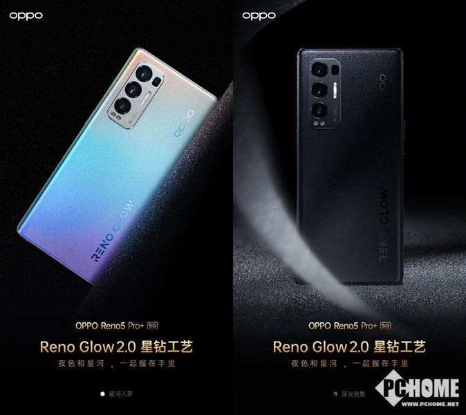 星河入梦和浮光夜影两种配色运用了不同工艺打造出两种截然不同的色彩呈现,星河入梦采用了独家的星钻工艺,相比此前的Reno Glow晶钻工艺有了更显著的改进。其AG蚀刻成型的是更为均匀的金字塔结构,相比此前的多面椎体反光面积更大视觉上更闪亮,在这种工艺下呈现了极为丰富的颜色,各种不同角度的观看有着完全不一样的色彩表达。