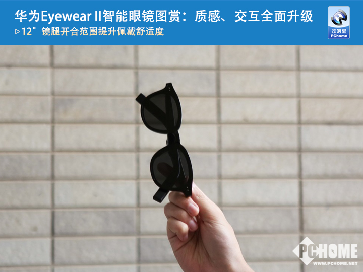 Eyewear II在镜框与镜腿连接处使用了韧性更强的钛合金弹性铰链,可以达到12°的开合范围,大多数用户的脸型都可以佩戴舒适,没有夹头的感觉。Eyewear II弧形镜腿的弧度为20°,对大多数用户的耳型都可以带来更好的包裹性和贴合性。