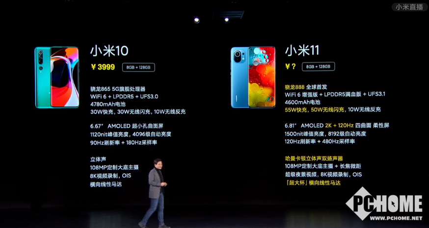 最后是售价,小米11的8+128GB是3999元,8+256GB是4299元,12+256GB是4699元,起价没变。
