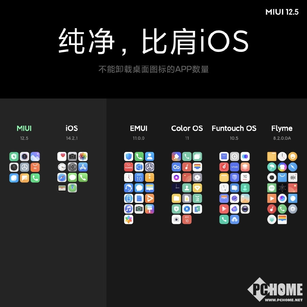 另外,通过全面可卸载专项,将不能卸载桌面图标的App最小化,比肩iOS。从官方PPT来看,除了相机、设置、图库、电话、短信等几个系统级应用外,其它不喜欢的应用统统可以删除。