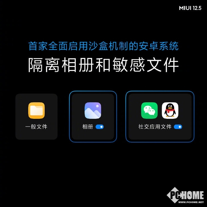 MIUI12.5启用沙盒机制,独立隔离相册和敏感隐私信息,应用需额外申请访问。支持单独设置应用读取权限细节。