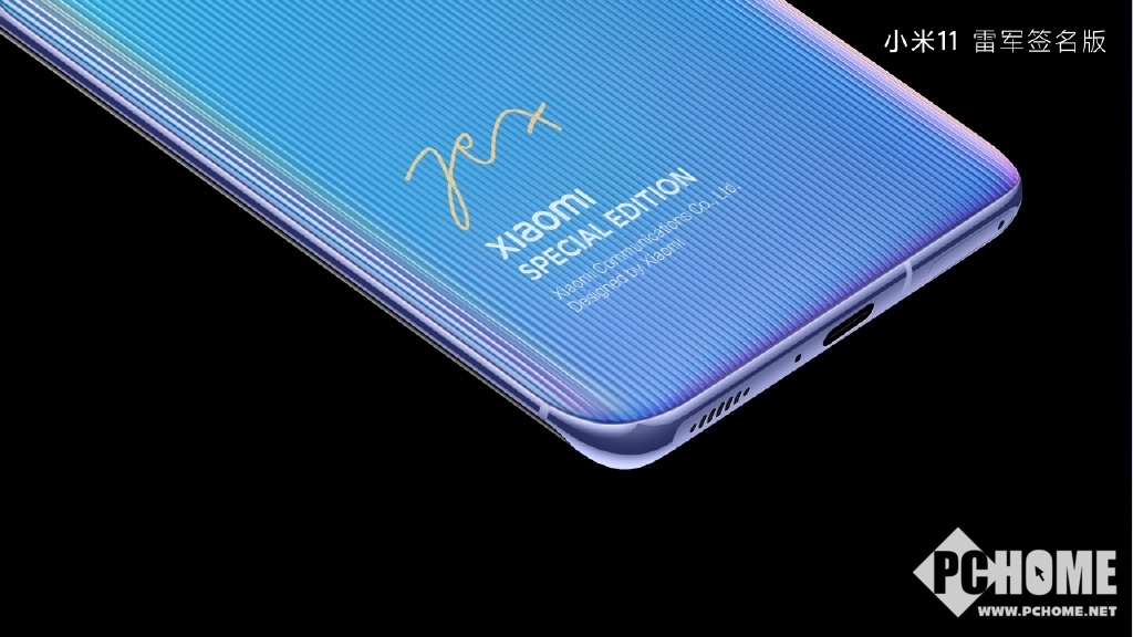 小米11雷军签名版采用独特的立体纹理玻璃后壳材质,首创玻璃表面热压纹理工艺。外包装也独具匠心,采用视高迪水晶工艺,波峰状立体幻彩肌理,凹凸有致炫彩斑斓。
