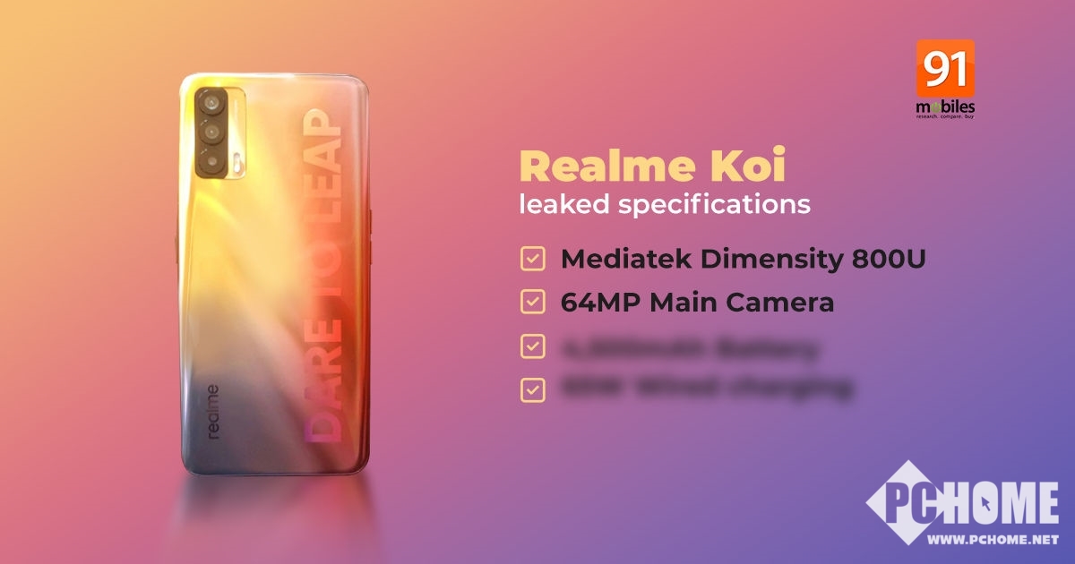 报道显示,realme Koi(锦鲤)或许会被命名为realme V15,该机将会在背部的左上角配备一个矩形三摄模组,同时在还延续了此前的logo设计,并且在机身左侧刻上了“DARE TO LEAP”(敢于越级)的标语,辨识度很高。