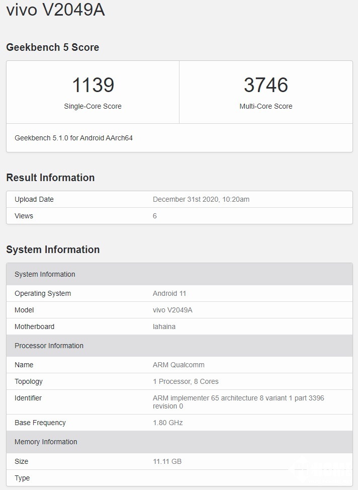 据最新消息,iQOO 7出现在通过了Geekbench基准测试,单核得分1139,多核3746分。该手机将于1月11日发布。