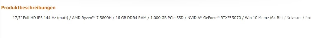 这是一款 17.3 英寸的游戏本,采用了 144Hz 的屏幕,配备了 AMD R7 5800H 处理器和英伟达 RTX 3070 显卡,16GB 内存和 1TB SSD。德国亚马逊将其标价为 1499 欧元,比 RTX 2070 游戏本最初上市的价格要低一些。