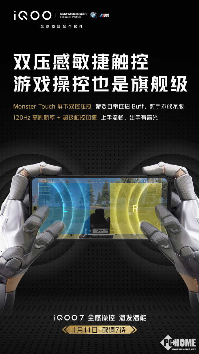 官方表示,iQOO 7带来了Monster Touch屏下双控压感,游戏自带连招Buff,给你旗舰级的游戏操控体验。