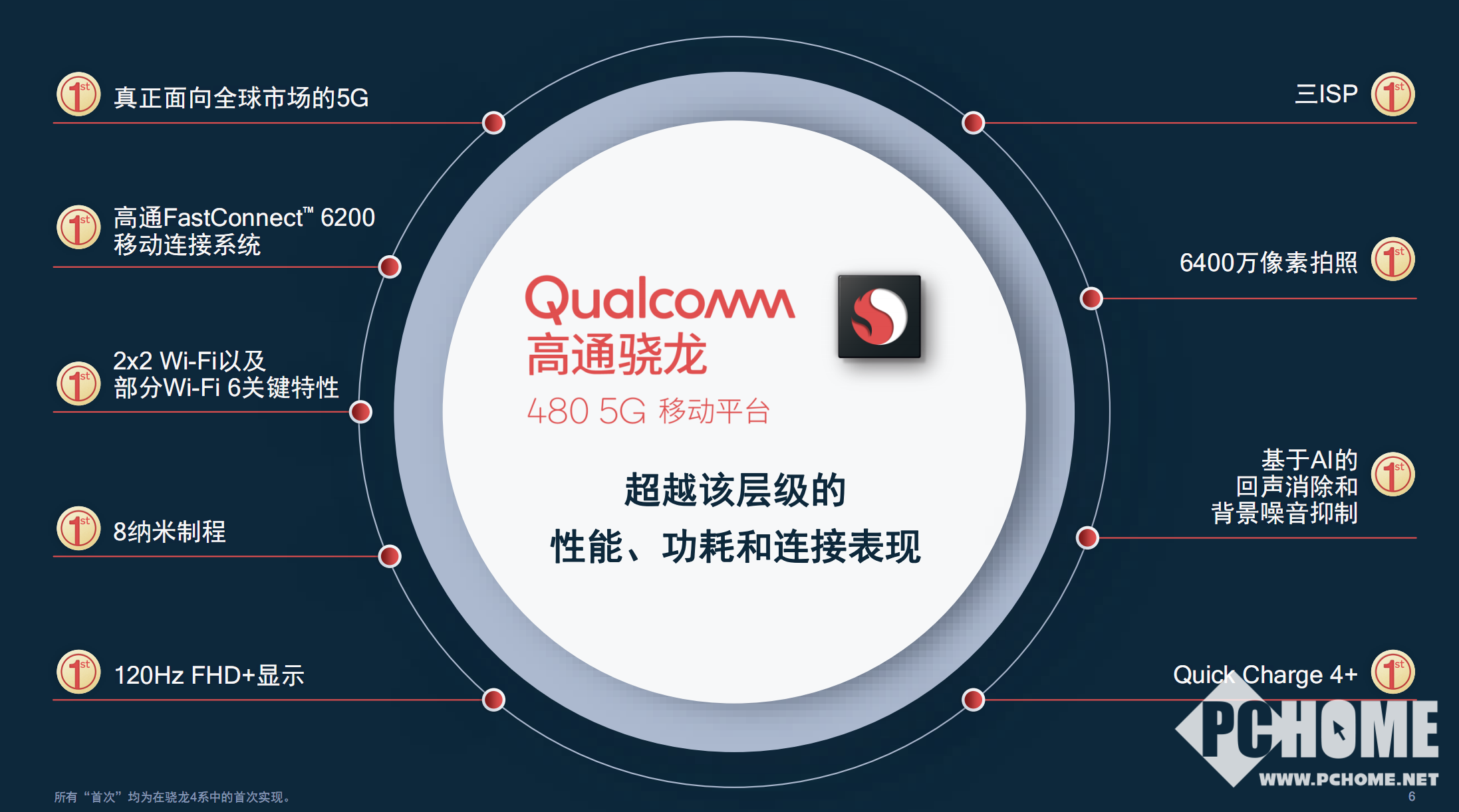 骁龙480在规格上可以说是突破性的,实现了骁龙4系列的九个第一次: