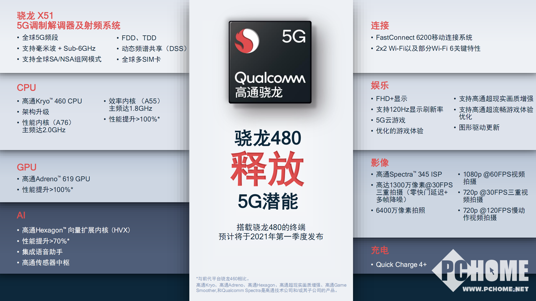 今天,高通正式发布了新一代骁龙480移动平台,而在这5G即将开始普及的2021年,骁龙4系列必然是支持5G的。