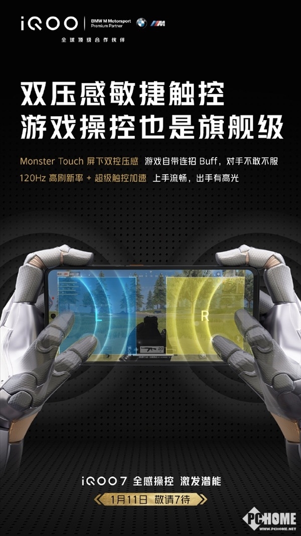 根据此前消息,iQOO 7除了在外观方面有所升级,还配备了新的Monster Touch屏下双控压感,使用分区压感来替换两个技能按键