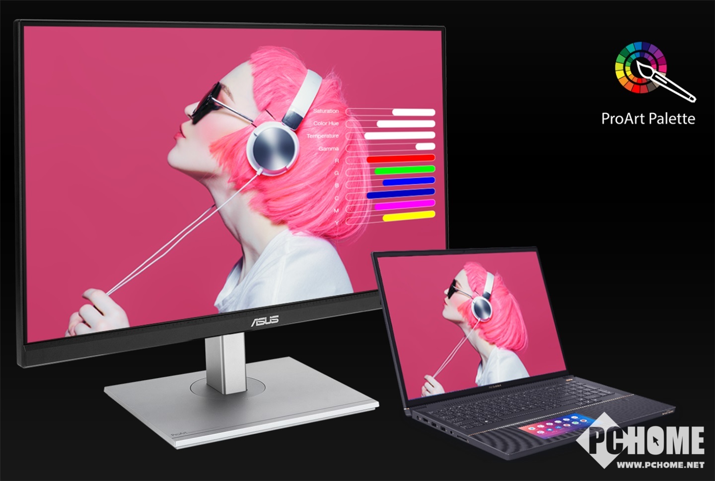 为了满足设计师的需求,此款显示器支持华硕 ProArt Palette 功能,可通过直观的屏幕菜单轻松存取色调、色温和伽马调整等各式参数,并且可将设置存在显示器中便于快速取用。