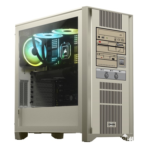 近日,国外定制品牌 Origin PC 推出了一款复古造型的游戏主机 RestoMod,搭配 AMD 锐龙 5600X、16GB 内存定制价格最低为 2007 美元,约合人民币 12958 元。这款主机有着丰富的配置可以选择,外观采用复古的米黄色,正面面板印有怀旧的光驱、软驱等图案,以及竖条格栅散热,钢化玻璃侧透设计能够看出内部强大的硬件。