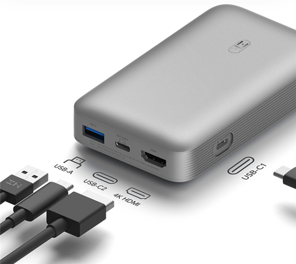 它可直接为笔记本电脑充电,USB-C2接口单独使用时,可为小米10 Pro提供50W MAX的充电功率,50分钟充电100%。也可为iPhone 12提供20W MAX快充,搭配ZMI USB Type-C to Lightning数据线,30分钟可充电60%。