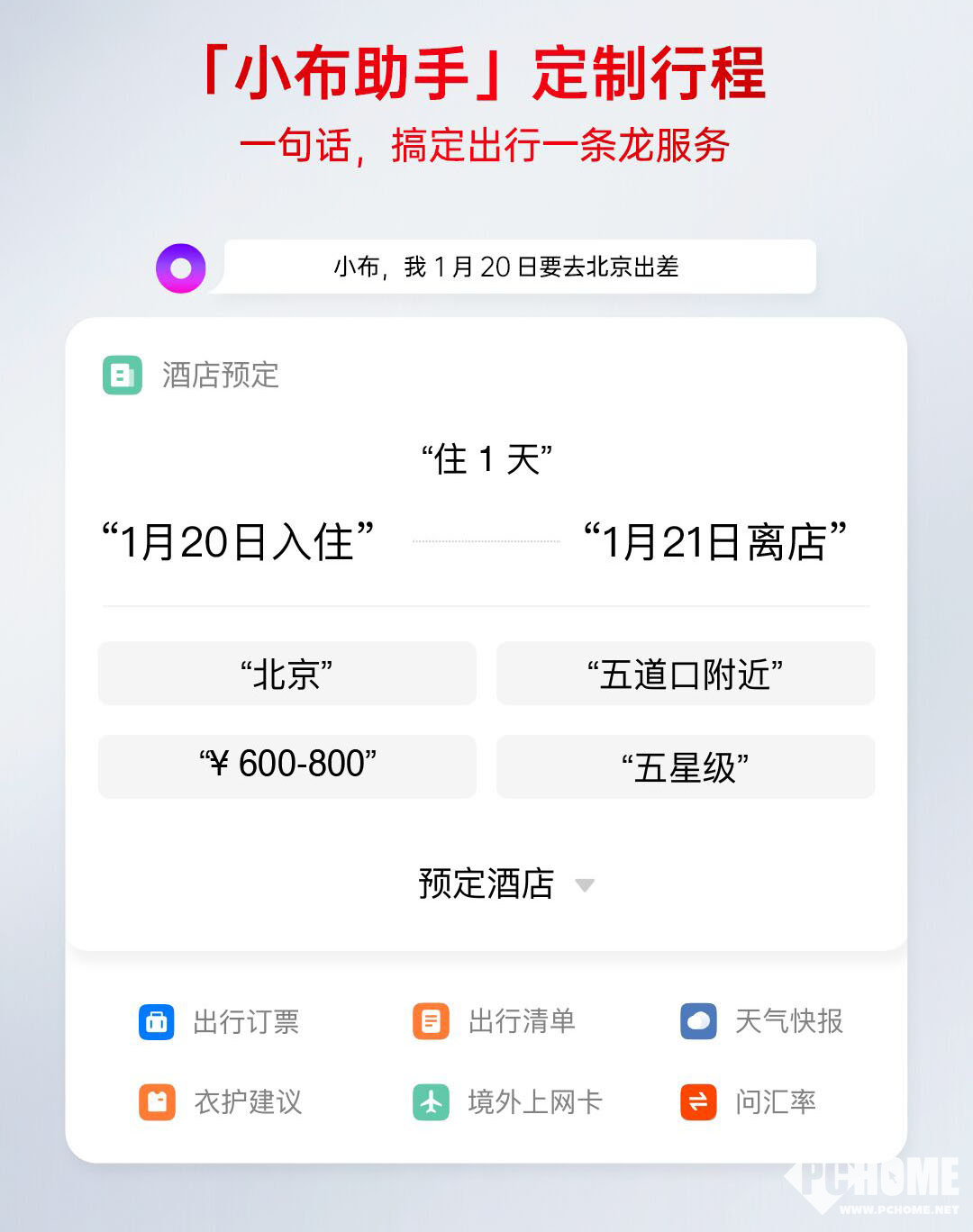 如果对于出行还没有进行有效的规划的话,我们大可让小布助手来提供建议,此时只要我们对其说出想要在什么时候去到哪里,小布助手即可根据你现在所处的问题,规划好到目的地的交通、酒店、住宿等一切需要的信息,我们只要再根据自己的需求,选择好相应的出行方式,并提前预订住宿,之后等待出行即可。