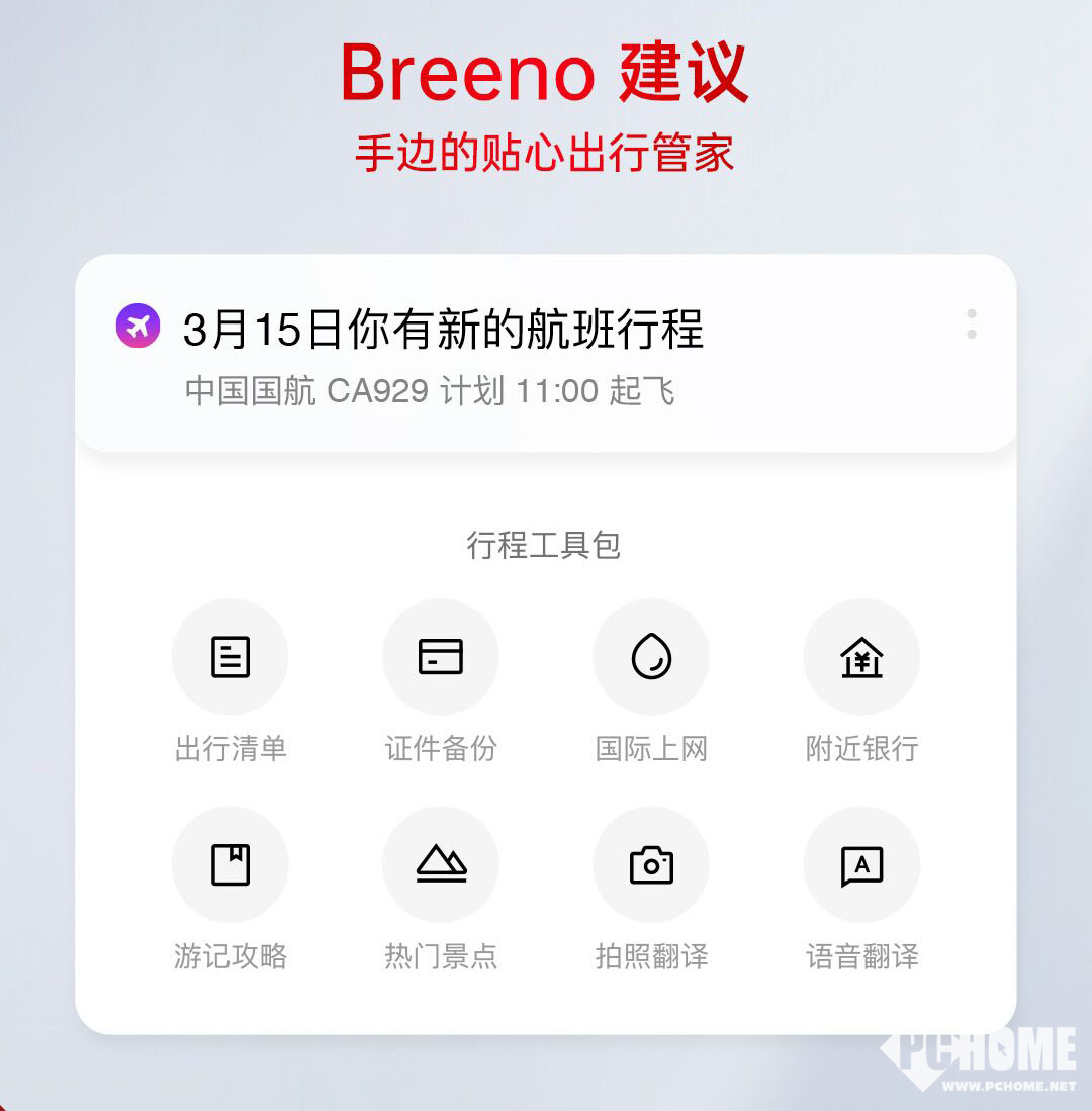 另外小布助手也会对出行过程中可能会遇到的情况进行预先提醒,比如其会提醒你检查身份证等证件是否携带,对于你所处地点附近的银行进行标记。当你到达目的地后,也会对当地的景点进行提示。如果是国际出行的话,还会为我们提供一键直达的漫游上网和拍照、语音翻译功能。