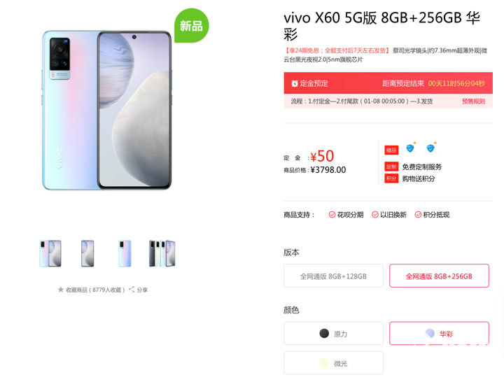 1月8日,vivo X60和vivo X60 Pro将正式在vivo官网、各大电商平台以及拼多多、分期乐、唯品会、招商银行掌上生活、平安银行口袋商城、交通银行买单吧、vivo体验店专卖店、vivo终端各大门店等渠道开售。vivo X60 8+128GB版本售3498元,8+256GB版本售3798元,12+256GB版本售3998元;vivo X60 Pro 12+256GB版本售4498元。用户购机至高享24期分期免息,并加赠半年碎屏宝和半年延保。感兴趣的朋友可以前往指定渠道购买。
