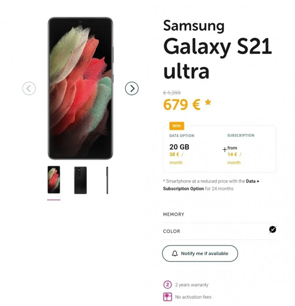 这售价与之前曝光的Galaxy S21定价879欧元,Galaxy S21+定价1079欧元,Galaxy S21 Ultra定价1399欧元几乎差不多。