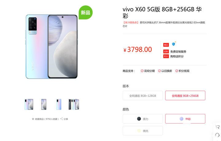 售价方面,vivo X60共有8+128GB、8+256GB、12+256GB三个版本,分别售3498元、3798元和3998元;vivo X60 Pro则为12+256GB,售价4498元,目前已在vivo官网、各大电商平台、拼多多、分期乐、唯品会、招商银行掌上生活、平安银行口袋商城、交通银行买单吧、vivo体验店专卖店、vivo终端各大门店等渠道开售。用户购机可想24期免息分期、半年延保、免费定制服务以及购物积分。感兴趣的朋友可以前往指定渠道购买。