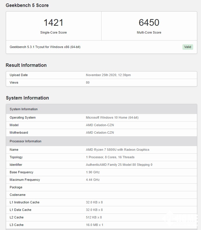 据之前报道,采用全新 Zen 3 架构的 R7 5800U 的处理器现已出现在了 Geekbench 上。