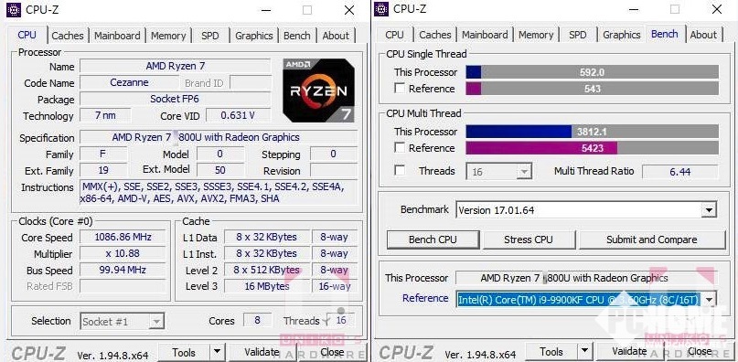 外媒Uniko’s Hardware公布了AMD R7 5800U的CPU-Z跑分,单核性能提升明显,接近600分。