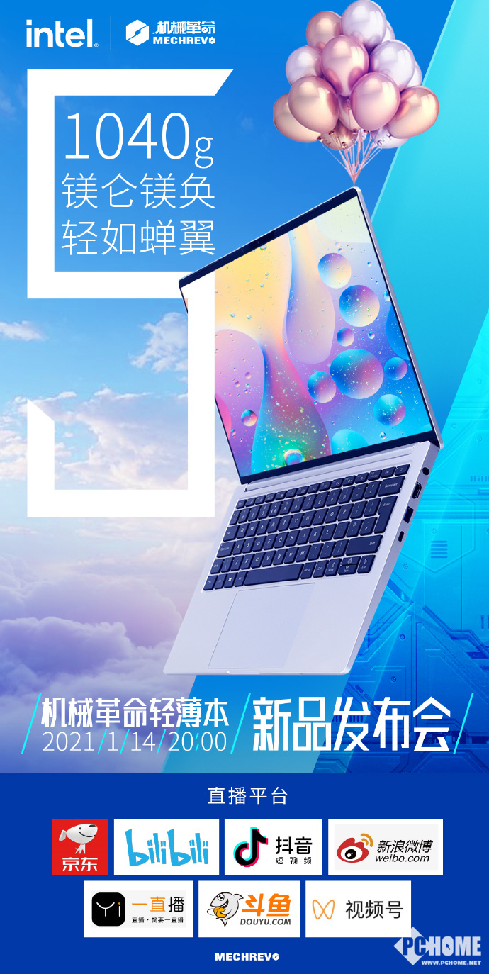 今天,机械革命宣布新品发布会将于1月14日举办,届时将会发布一款只有1040g重的轻薄本。