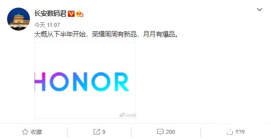 据@长安数码君爆料,荣耀在今年的下半年将有多款新品发布,预计新品中智能家居类产品居多。