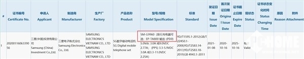 另外,根据近日的3C认证信息显示,三星Galaxy S21系列的旅行充电器为“可选”,这表明三星今年可能会采取与苹果同样的环保策略,取消包装中的充电器,用户需要自行购买快充设备。