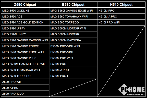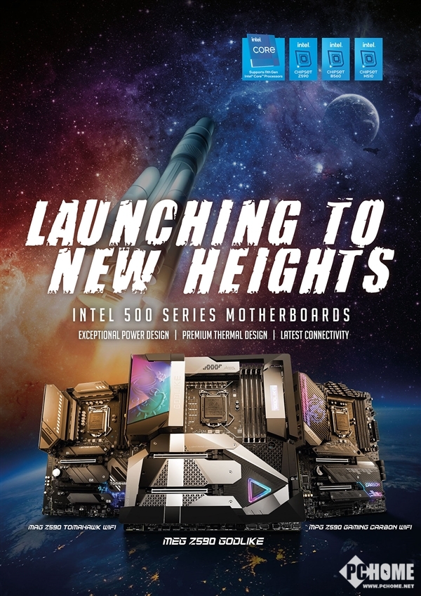 MPG——在MPG系列中,微星将会来MPG Z590 GAMING CARBON WIFI、MPG Z590 GAMING FORCE、MPG Z590 GAMING EDGE WIFI和 MPG Z590 GAMING PLUS等主板。