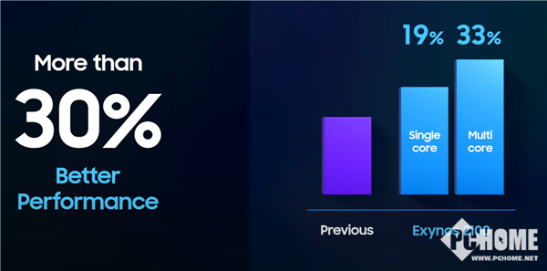 三星表示,Exynos 2100的CPU性能比前代提升30%,单核提升19%,多核提升33%。