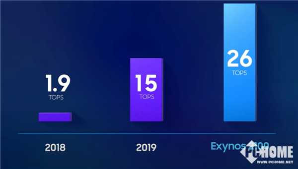 NPU方面,这次Exynos 2100也使用3个AI核心,性能可达26TOPS,也就是26万次操作性能,这点上跟骁龙888是一样的。