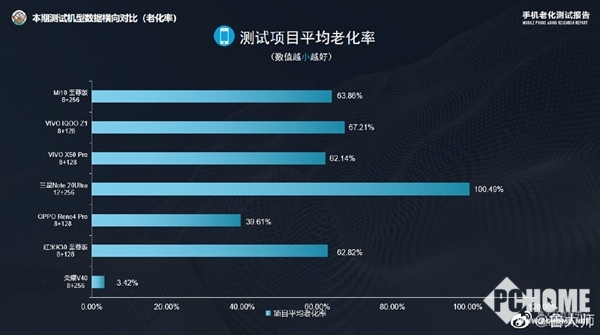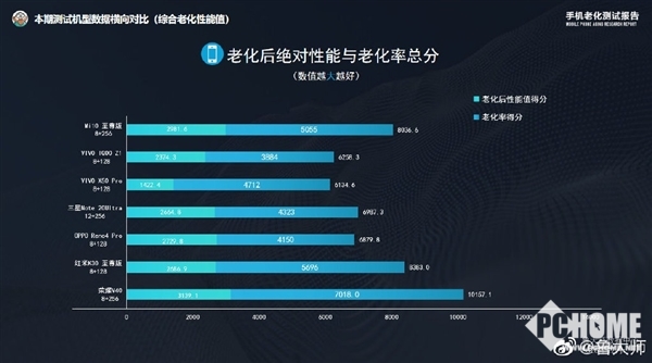 根据鲁大师给出的测试报告显示,荣耀V40在老化后绝对性能与老化率测试项目中,取得了10157.1分的最高成绩,测试项目老化率也仅为3.42%(越小越好),将一众对手远远甩在身后。