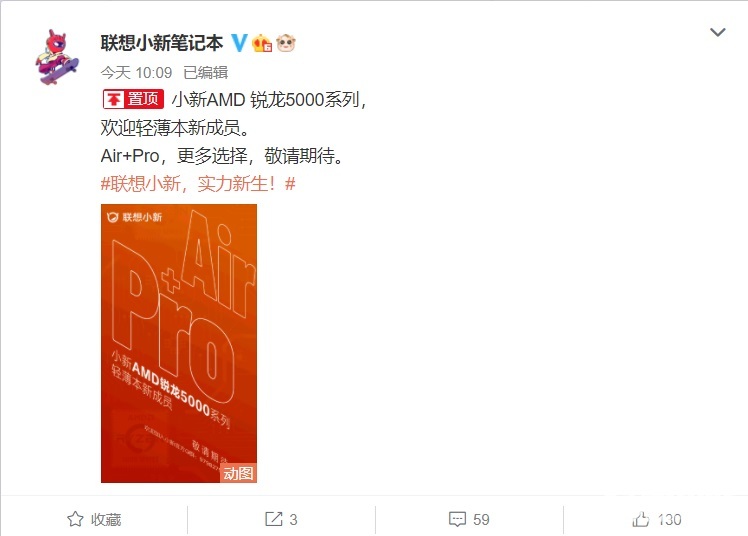 今日上午十点,联想官方微博发文正式宣布,将推出 2021 款小新 Pro/Air 笔记本,搭载最新发布的 AMD 锐龙 5000 系列处理器,最高可选 R7 5800U,单线性能提高16%,非常值得期待。