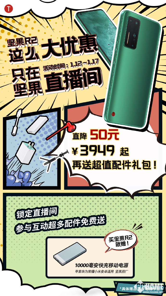 日前,坚果手机官方微博预告,表示从即日起至1月17日,在京东天猫坚果手机官方直播间下单坚果R2,到手价只要3949元(8GB+128GB)。