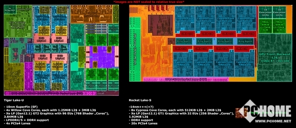 这让我们可以一窥它和以往架构的不同,尤其是对比同样属于第11代序列但面向轻薄本的Tiger Lake。