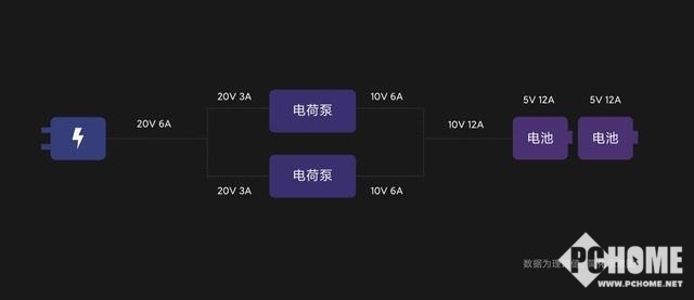 以目前的快充技术来看,想要做到这么大功率的快充技术势必要使用多电荷泵技术,搭配多电芯来叠加充电功率,简单来说就是“开多一条路”,使用多条电路并联设计直接为多个电池进行充电。