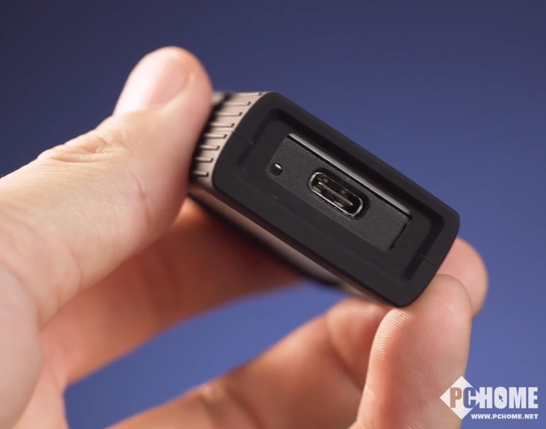 第三款为 XS2000 移动固态硬盘。这款产品体积小巧,两面使用铝合金外壳提供散热,外部包裹橡胶保护套,接口部位有指示灯。